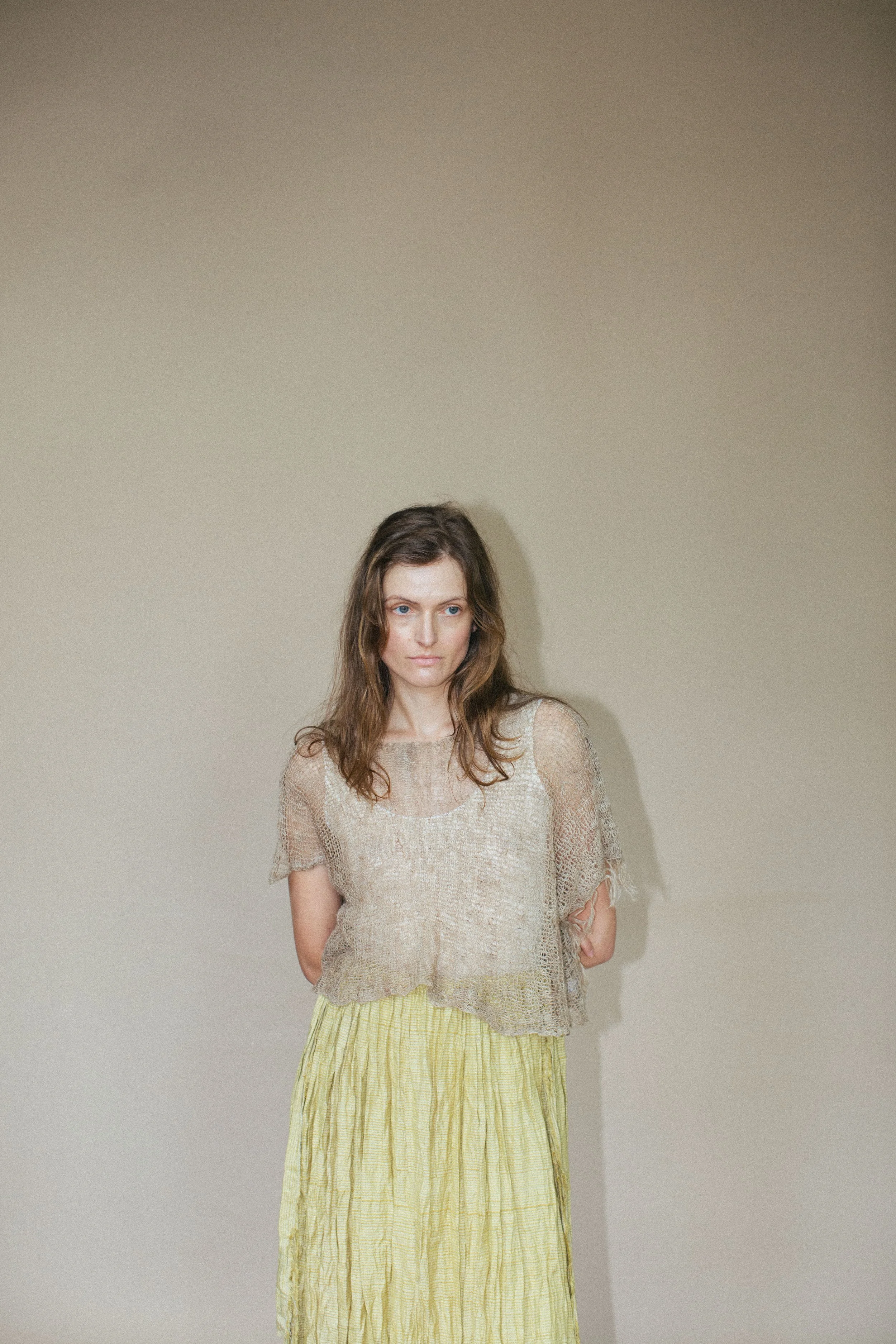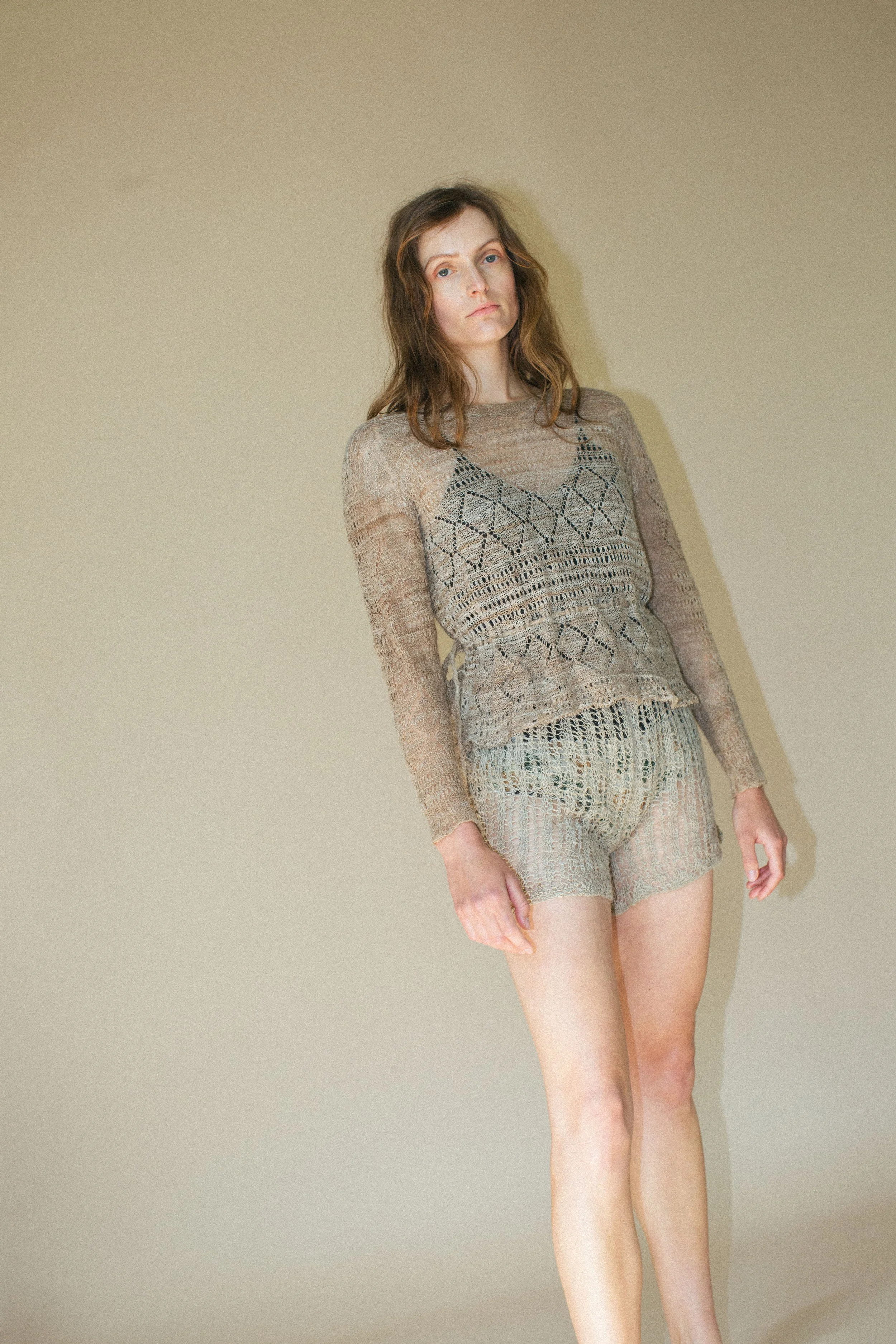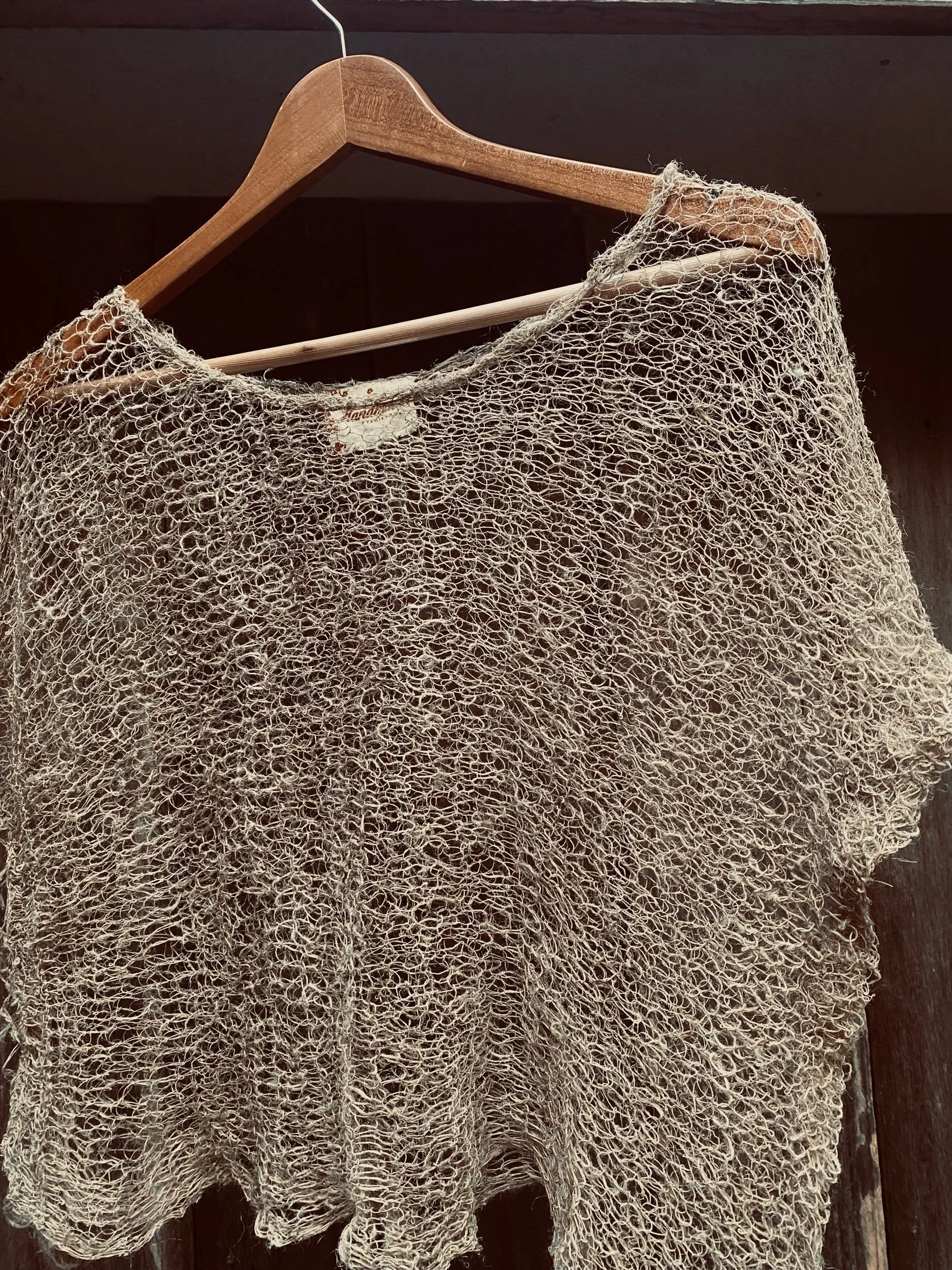 Handmade using handspun and handknitted nettle fibre in a plain knit pattern.