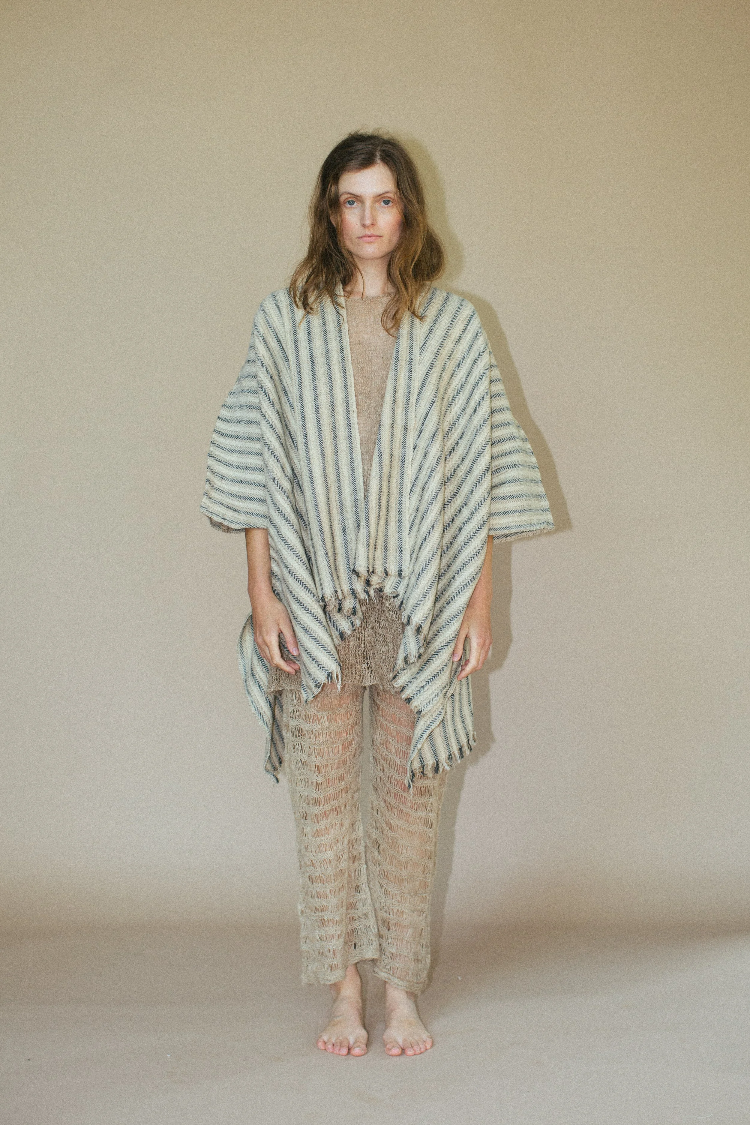 The robe is handloomed with hand spun raw nettle fibre.